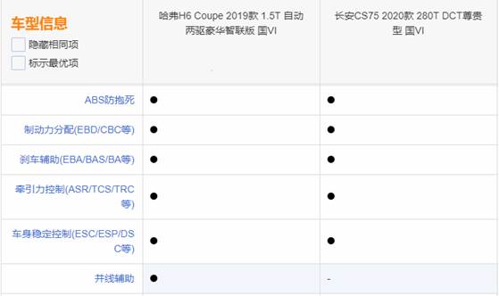 在常规配置方面,两款车的配置堪称全面,尤其在被动安全配置上可谓旗鼓相当,但在主动安全配置上,只有新哈弗H6 Coupe配备了并线辅助。另外新哈弗H6 Coupe较长安CS75多配备了360度全景影像、前后驻车雷达,可见新哈弗H6 Coupe在泊车辅助设备上更为全面,让新手在泊车时更得心应手。