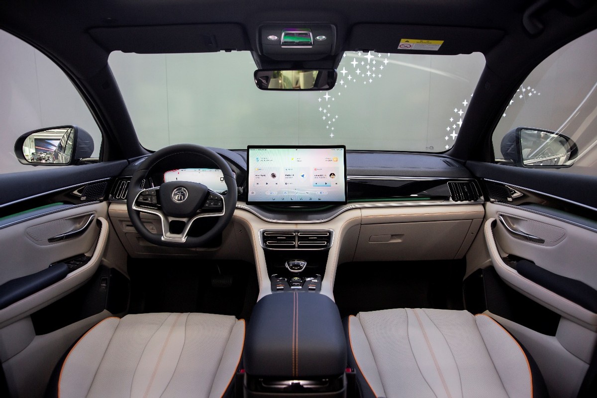 进入店内,旗舰PLUS 5G版位于门店中心位置,十分抢眼,店内处处充满海洋精致元素,简洁明亮的环境下更显其时尚大气,八面龙吟的前进气格栅搭配晶钻龙眼LED大灯组成科技感十足的前脸, 贯穿式龙爪尾灯的流水转向与动态迎宾效果,打造仪式感爆棚的车尾。