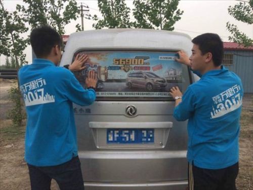 张贴海报、单透,发放单页,为客户讲解车型信息和购车优惠,为老客户免费检修车辆,发放玻璃水,无论走了多远多久,我们都不会忘了因为什么而出发。