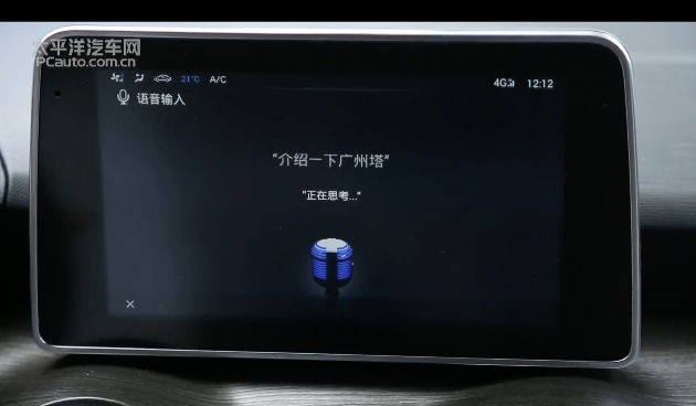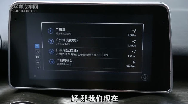 9英寸悬浮式中控屏立刻显示:“导航至广州塔。”并给出10条路线选择。