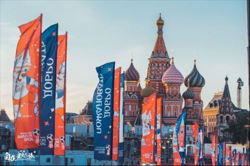 世界杯期间的莫斯科吸引了来自全世界的球迷游客,在球场之外也是一片热闹景象。在位于市中心著名的红场上,飘扬着的世界杯各色旗帜与古老的建筑相得益彰,让壮丽的红场更有生机活力。