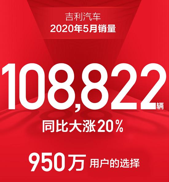 增长强劲!吉利汽车5月销量108822辆,同比增长20%