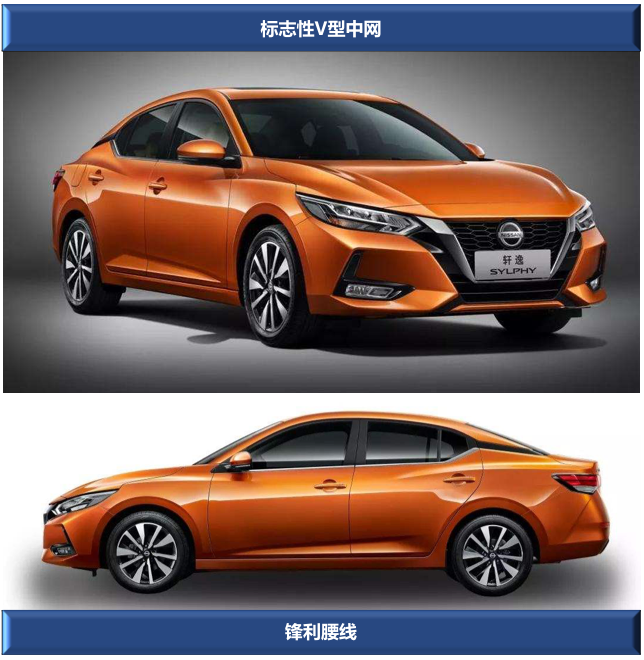 再来看轩逸,这款车在去年换代之后,用上日产全新的V-Motion2.0家族式设计语言,外观运动感相比上代车型增强许多。其中,标志性V型中网尺寸进一步加大,搭配锐利前大灯组,整个前脸显得棱角分明。不足的是,该车腰线设计中规中矩,过于锋利腰线一直延伸至尾灯的设计比较常见,缺乏新鲜感。