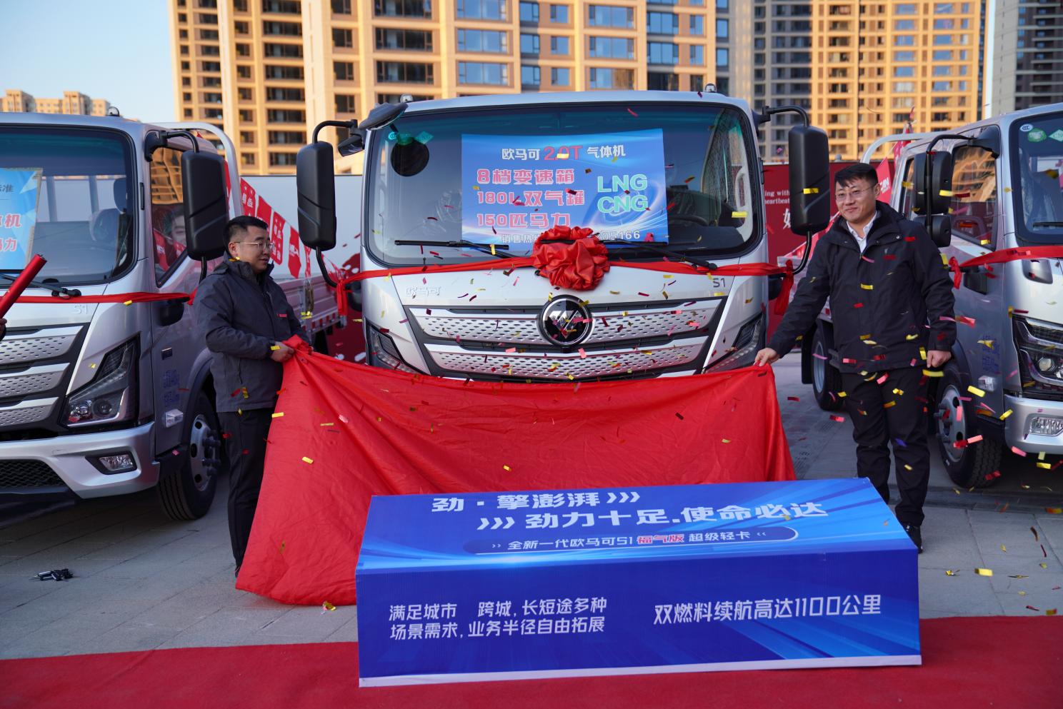 在能源结构转型与物流效率提升的双重驱动下,为应对运价内卷、新能源购车成本压力及中长途续航焦虑,不少富气区域客户尝试气体机轻卡,来实现“降本增效”。此次在银川亮相上市的欧马可S1福气版LNG轻卡,以更可靠、更节气、更强劲、更舒适等核心性能优势,为富气区域乃至全国客户提供更优选择,焕新用户气体机货运体验,开启燃气轻卡新篇章。