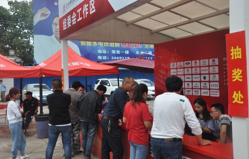 在开幕式结束后,组委会就开始忙碌了起来,各地的市民纷纷来到组委会工作区领取充电宝、现金红包,成功签单的经销商也兴奋的带着客户来参与购车抽大奖的活动,据了解,此次购车抽大奖活动是100%中奖率,一等奖则高达4999元的嘀嘟客户外礼包一份,这绝对可以说是一个大奖,现场购车的准车主在购车的同时也能享受到抽到大奖的乐趣。