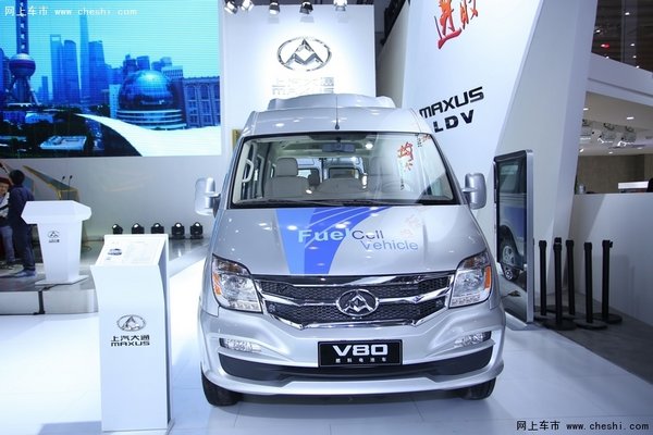 在 新能源方面,上汽大通带来了代表中国汽车工业最尖端技术的V80燃料电池车,是中国第一台燃料电池轻型客车。V80燃料电池车是上汽大通基于V80平台, 以上汽新一代氢燃料电池系统为动力源而开发的可插电式双动力源燃料电池汽车,车辆续驶里程可以达到400km,是国际同级轻客中第一款绿色环保燃料电池汽 车,同时也是国内最早且唯一商业化的燃料电池车。在安全性上,V80燃料电池车通过技术上在高强度氢瓶加装密封机构实现了被动安全防护;通过乘员舱、氢瓶 舱多方位加设氢泄漏传感器、红外线通讯信息交互模块,实现了主动氢安全防护;解决了燃料电池系统汽车行业量产化的氢安全风险。在环保性上,其燃料为氢气, 通过电堆系统和空气中氧气反应后产生电能和水,实现完全绿色、无污染、低噪声、零排放。凭借国内领先的新一代电堆系统、一体化高功率密度燃料电池动力总成 集成、国际水平的70MPa供氢系统、高效的制动能量回收系统等科技,V80燃料电池车将为轻型商用车客户提供新型环保出行解决方案,2017年,V80 燃料电池车将在北京、上海等地开始运营。
