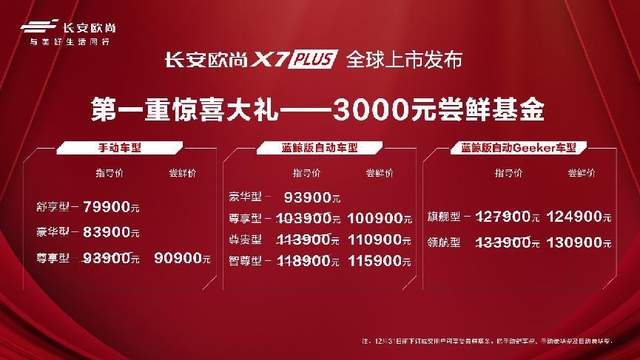 其中,第一重惊喜大礼为3000元尝鲜基金,12月31日前下订成交的用户,除手动舒享型、手动豪华型及自动豪华型三款车型以外均可享受。