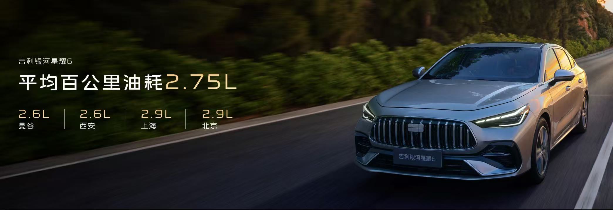 节油硬实力加持,吉利银河星耀6无惧全球拥堵路况的终极试炼。在曼谷拥堵的城市道路中,星耀6跑出了百公里2.6L的馈电油耗,而在西安、上海、北京等城市进行实测中,油耗稳定在2.6L-2.9L之间,以“怎么开都2L级、谁来开都2L级、在哪开都2L级”的稳定表现,树立电混效能新标杆。