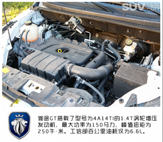 伽途GT搭载了型号为4A14TI的1.4T涡轮增压发动机,最大功率为150马力,峰值扭矩为250牛·米。工信部百公里油耗仅为6.6L。